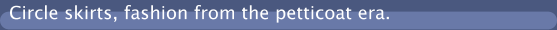 They are here! - circle skirts -go to our online shop , click on product overview and in our 50's fashion category you be able to view the range. There are 50's style petticoats, and cincher belts available in this department too. Add your own applique to turn a circle skirt into a poodle skirt! Our retro dresses and circle skirts are the most glamorous in dancewear and are always commented on when worn out by our staff, (especially when worn with a petticoat) |