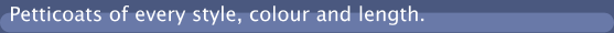 Petticoat dreams, at last a full range of petticoats available at reasonable prices! Dance petticoats, wedding petticoats, petticoats for fun and fashion petticoats.