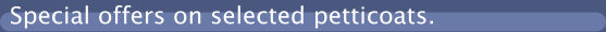 Petticoatdreams - an amazing range of wonderful petticoats for dance, bridal and fun. Retro fashion heaven - 50's dresses, swing dresses, circle skirts, cincher belts and a petticoat for every style - Chiffon petticoats, organdy petticoats, net petticoats, lame' petticoats, bridal petticoats, costume petticoats, luxury petticoats, french maid petticoats, reversible petticoats, square dance petticoats, rock n roll petticoats, crystalline petticoats, can can petticoats, 50s petticoats, dance petticoats, frilly petticoats, goth petticoats, wedding petticoats, tulle petticoats, maids petticoats. Dancewear and party wear. The petticoat place!