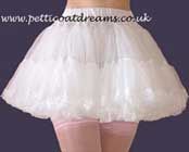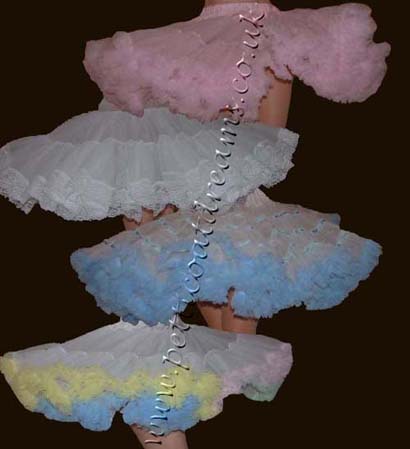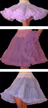 Petticoatdreams - an amazing range of wonderful petticoats for dance, bridal and fun. Retro fashion heaven. Chiffon Petticoats, Organdy Petticoats, Net Petticoats, Lame' Petticoats, Bridal Petticoats, Costume Petticoats, Luxury Petticoats, French maid Petticoats, Reversible Petticoats, Square Dance Petticoats, Rock n Roll Petticoats, Crystalline Petticoats, Can Can Petticoats, 50s Petticoats, Dance Petticoats, Lace trimmed Petticoats, Goth petticoats, Maids petticoats. The petticoat place!